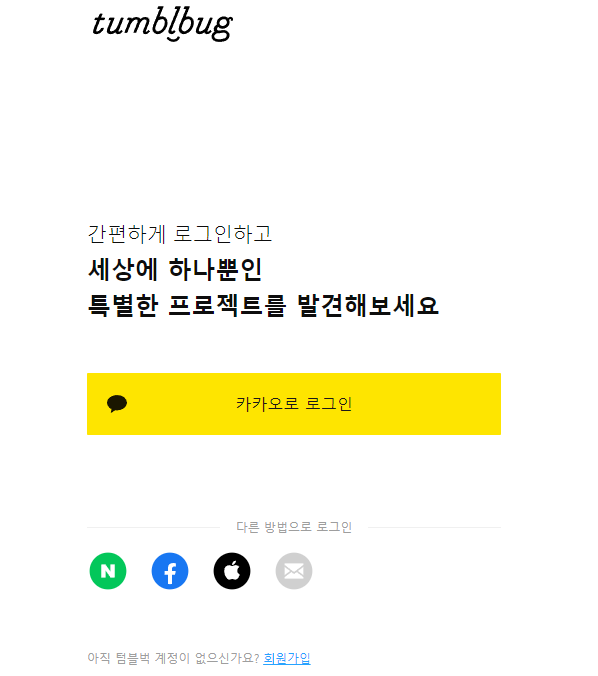 먼저 해당 텀블벅에 접속하시면 회원가입을 해주세요